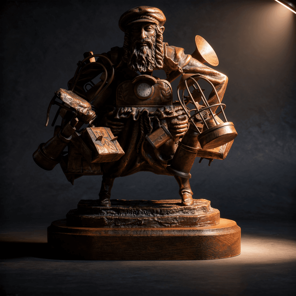 Бронза, литье, медь, пайка, дерево. Высота – 25 см. 2011