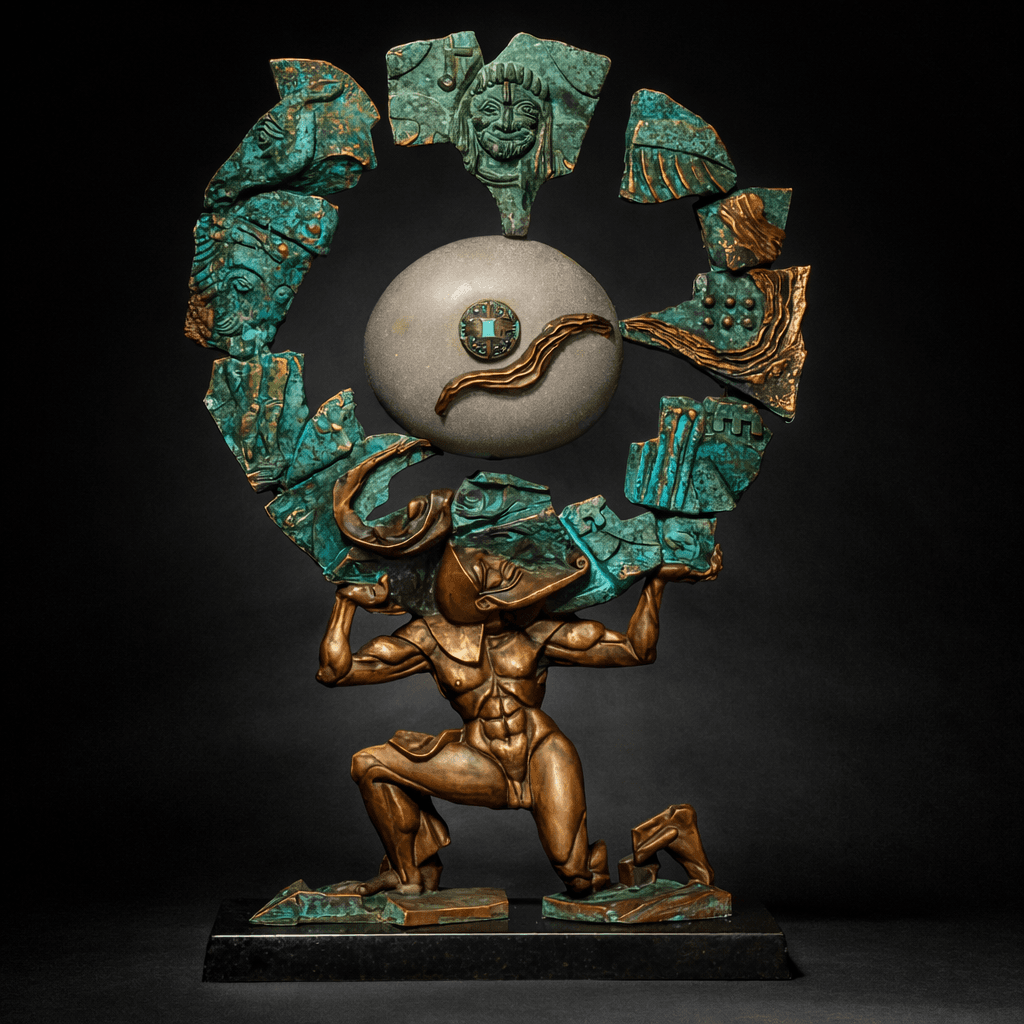 Бронза, литье, патинирование, камень. Высота 80 см.