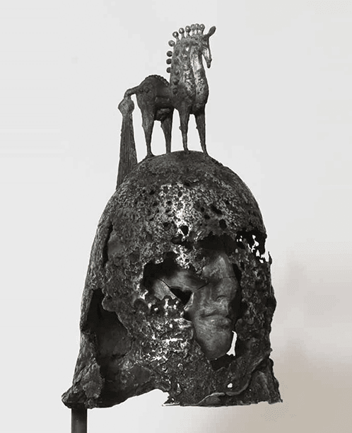 Бронза, сталь, литье, патинирование, камень. Высота 70 см.