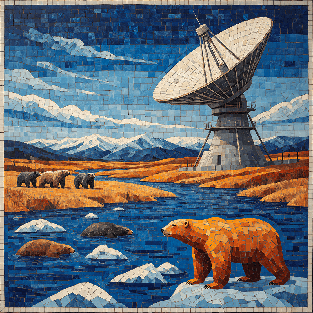 100 х 100 см. Мозаика «Чукотка. Эгвекинот» Выполнена в технике витражного стекла — тренкадис. Через игру цвета и фактуры витражного стекла автор передаёт свое видение Чукотки:суровой, величественной и самобытной земли, где природа и культура образуют неповторимый союз.Работа соединяет традиции витражного искусства с художественным осмыслением этого уникального региона России.
