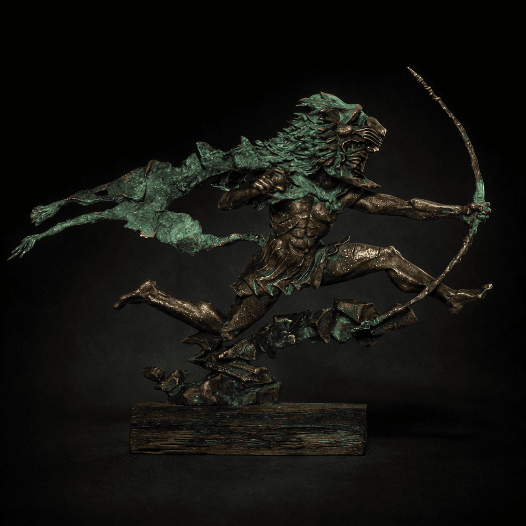 Бронза, литье, дерево. Высота 45 см.