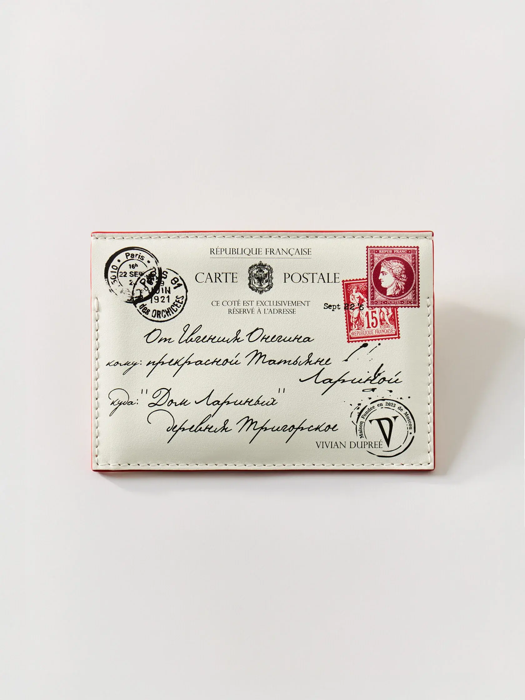 Картхолдер, вдохновлённый письмом Онегина к Татьяне Лариной - одним из самых искренних и противоречивых признаний в русской литературе. Образ письма переосмыслен как личное высказывание о чувствах, которые важно не скрывать. В оформлении использованы французские почтовые печати и марки, создающие ощущение подлинного письма, прошедшего время и расстояние. Картхолдер выполнен из натуральной итальянской кожи с замшевым подкладом, дополнен итальянской фурнитурой. Имеет три отделения для карт и отдельный кармашек для наличных. Изделие создано вручную и несёт в себе лёгкое напоминание о том, что если любишь, стоит говорить.
