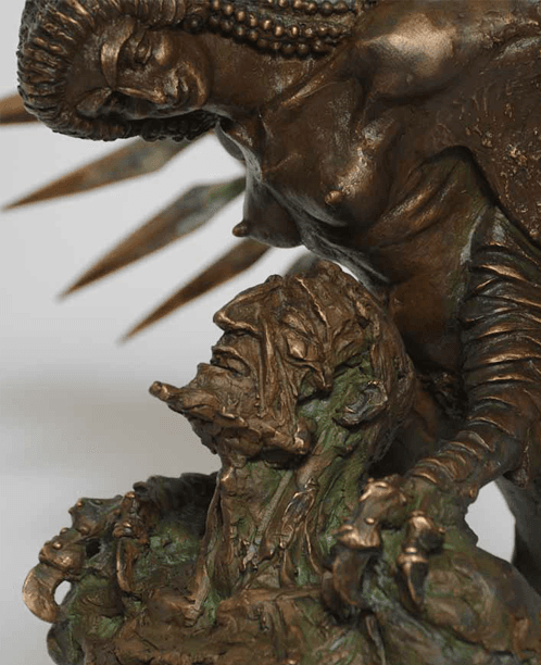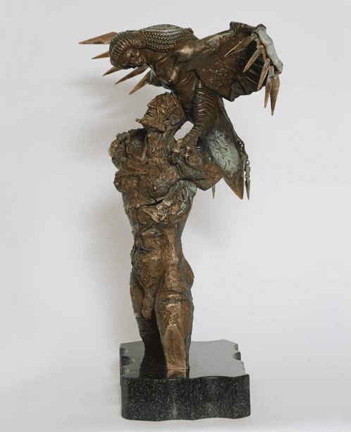 Бронза, литье, патинирование, камень. Высота 41 см.